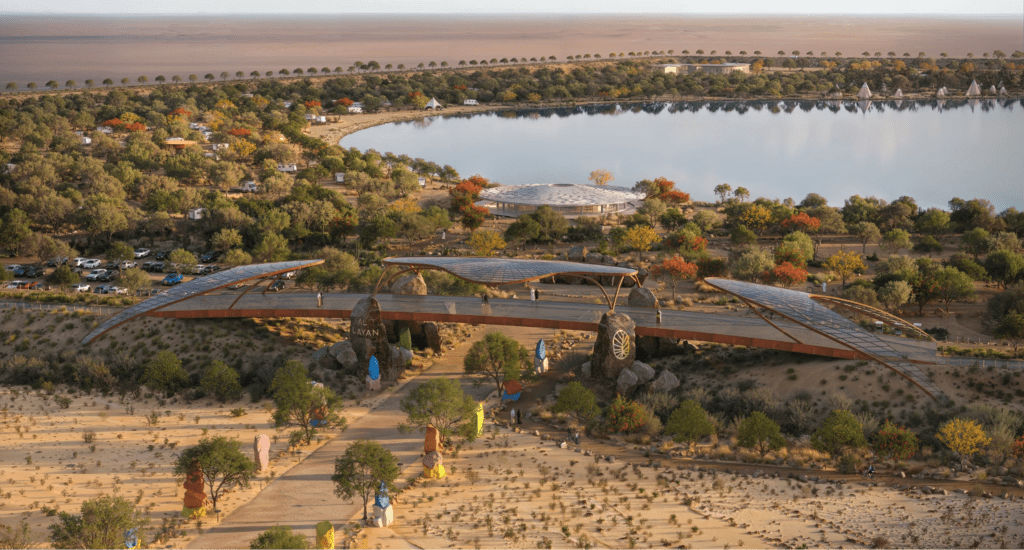 To accommodate its projected annual visitor numbers, the oasis will include 1,000 parking spaces, in addition to the 100 caravan camping spots. Accessibility and visitor flow have clearly been prioritised to ensure a smooth experience even during peak periods.