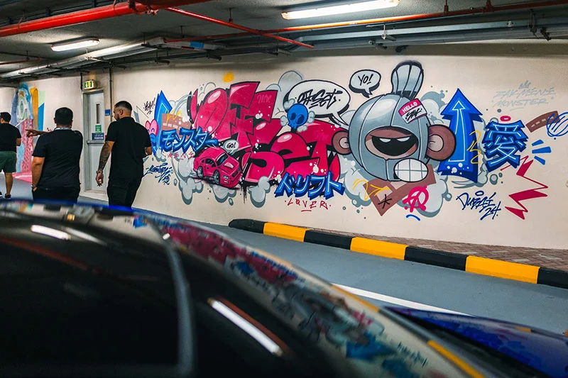 - Street art installations that bring a creative edge to car culture.