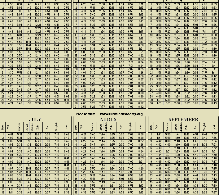 Q3: Are prayer times the same every day?