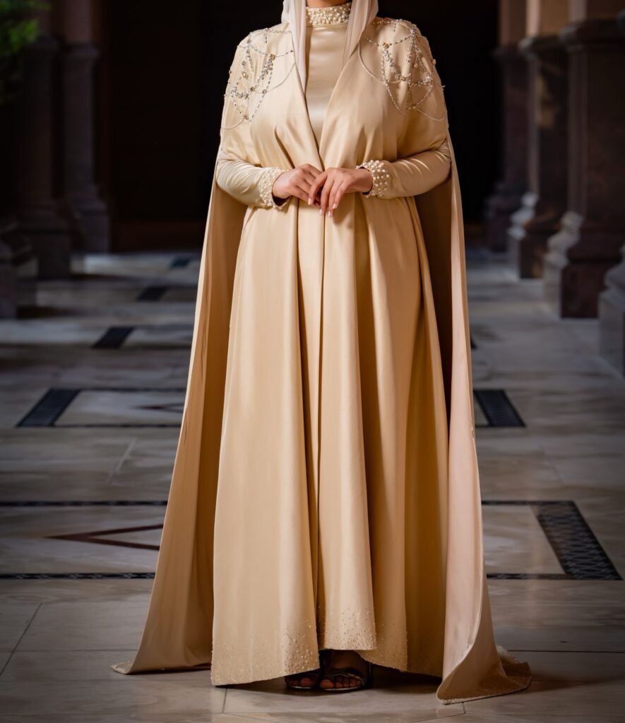 Each garment is a fusion of three key elements: Islamic heritage, British design, and Aisha’s personal storytelling. The result is a collection that blends hand embroidery and couture craftsmanship with symbolic meaning.