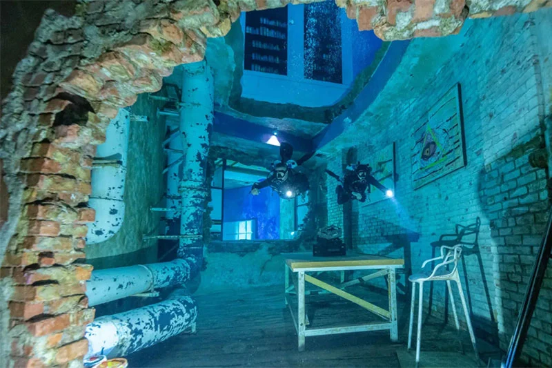 But it’s what’s inside that makes it so spectacular. Beneath the water’s surface, you’ll find an eerie, sunken city complete with abandoned apartments, submerged arcades, graffiti-covered walls, and even a library. Divers get to explore a hidden underwater world that feels straight out of a movie set.